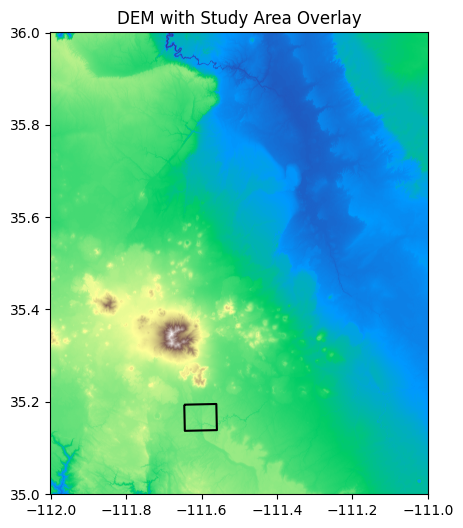 ax.set_title("DEM with Study Area Overlay")
